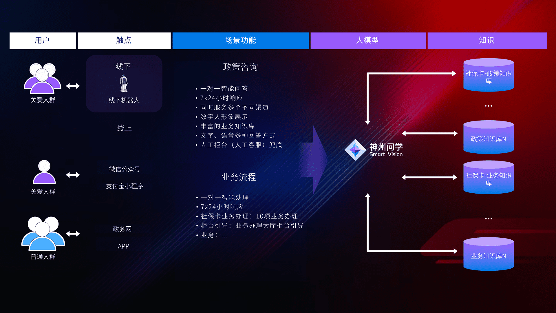 • 线上线下全覆盖:线上提供微信公众号、、、、支付宝小程序、、政务网、、、app多种渠道,,与线下机器人形成完整服务体系。。。。