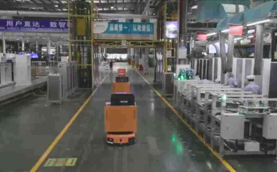 为车载冰箱物流配送打造的智能解决方案,,,包含产中物流通过潜伏举升AMR搬运至线边,,产后成品物流智能仓储,,,流程包含产中物流智能齐套入库,,,,线边安灯叫料AMR智能配送至线边,,,成品入库、、、出库,,,通过无人堆高车机器人,,,,智能仓储管理替代人工作业管理,,实现更高存储、、、、更高效率、、、更具柔性化的解决方案。。。